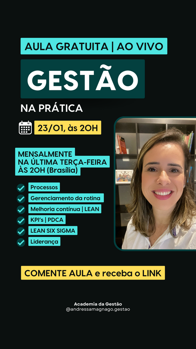 Em toda última terça-feira do mês, às 20h, AULAS GRATUITAS e AO VIVO sobre Métodos e Ferramentas de Gestão na PRÁTICA